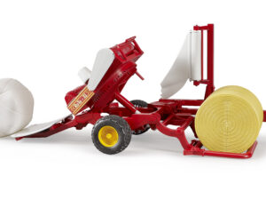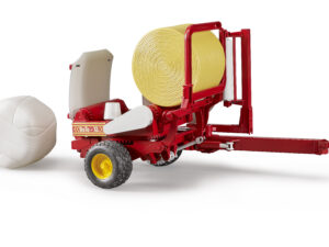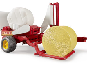Ballenwickler mit ockerbraunem und weißen Rundballen